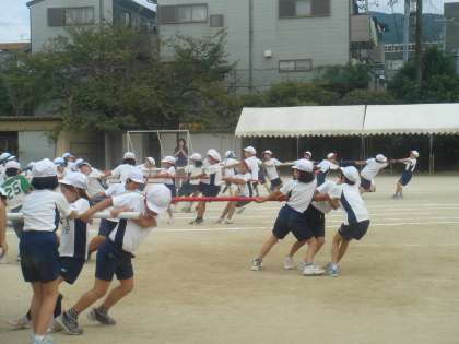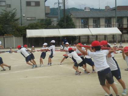 チームが力を合わせて棒を引き,自分の陣地まで引っ張ってきた棒の数で勝敗が決まります。運よく一瞬にして引いてきたり,引っ張り合いをしてなかなか動かなかったり,目が離せません。曲のビートに合わせて力強い振付でかっこよく入場する姿もお楽しみください。