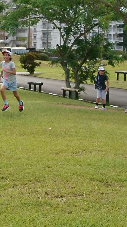 芝生広場で思いっきり体を動かします。