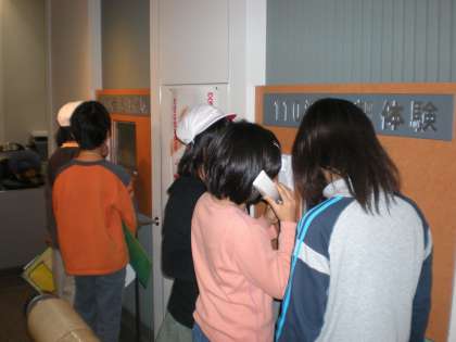 社会見学で京都府警察広報センターに行きました。普段なかなか見られない交通管制センターや通信指令センターのお仕事も見せていただきました。見学している間にも,どんどん110番通報が入るのには,びっくりしました。