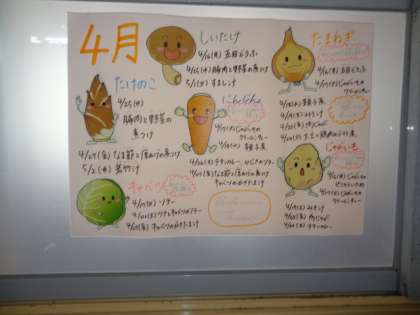 錦林小学校のランチルームには今旬の食材が紹介されています。