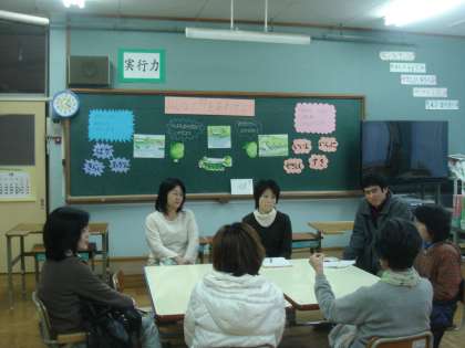 絵本「そらまめとくんとめだかのこ」の読み聞かせを聞き,そらまめくんの気持ちを考えたりメダカを助けた時の様子を発表しました。懇談会では,白河総合支援学校の生徒がパン屋の店員として自立していく姿のビデオも見ました。