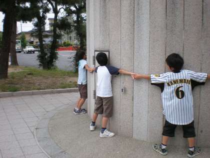 正解は・・・12人でした。みんな手がちぎれそうなくらい大きく伸ばしてつないでいましたが,10人分以上の太さなんですね。