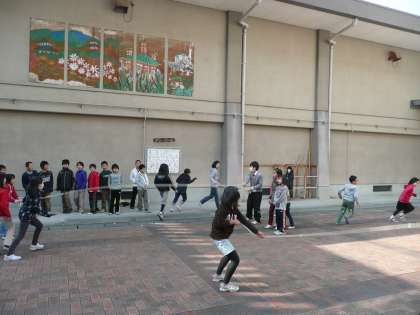 今日は立春です。暦にあわせるように暖かくなりました。写真は,昼休みに大縄をしている4年生児童の様子です。運動場で遊んでいる子どもの中には,半そでになっている子どももいました。