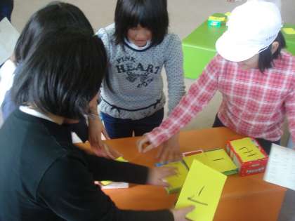 図書委員会による図書まつりが今週から始まりました。先週に予定していたのですが,風邪やインフルエンザの欠席が多く延期していました。今週は欠席者も減り無事できる運びになりました。中間休みに本の広場と図書室を使って5・6年の図書委員が中心に進行しています。。本のカバーパズルや本の題名並べかえ,本のしおり作りなど楽しめるアイデアがあり,多くの児童が集まりました。今日は3・4年,明日は1・2年と4・5組,来週の月曜日は5・6年,火曜日は全校児童対象です。