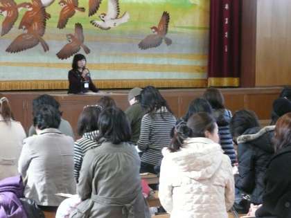 保護者のみなさんには体育館で学校生活について説明をさせていただきました。入学式まで40日あまりです。在校生や教職員も楽しみに待っています。
