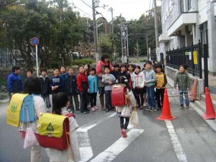 今朝は2年生があいさつ運動をしました。丸太町に面する正門には3組,東門には2組,エントランスホールには1組というように,子どもたちは学級ごとに分かれて立っちました。どこからも,「おはようございます」の元気な声が響きました。校門前を通る人からも思わず笑顔であいさつを返していただきました。