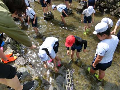 魚はとても逃げるのが速いのですが,子どもたちは,歓声をあげながらつかまえていました。