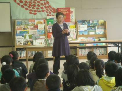 京都新聞の日曜日に「ソフィアがやってきた」という記事が掲載されています。6年生の子どもたち対象に,京都・滋賀在住の著名な方が特別講演をしに学校に来ていただく事業です。今日は本校に、児童文学者の今関信子さんがおいでいただき「目と心と好奇心」といった内容でエネルギッシュなお話を聞かせていただきました。6年生の聞き方がよかったとほめていただきました。最後に子どもたちがお礼に「翼をください」の歌をうたったのですが,今関さんはそのことも感動してくださいました。是非,今関信子さんの作品の紹介コーナーを作りたいと思います。