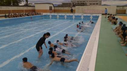 先週は水慣れとして,全員で楽しんで水泳授業を行いました。