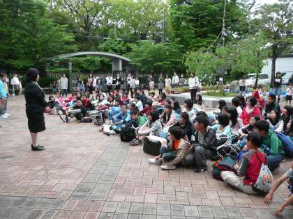 6年生児童は午後6時前に学校に到着しました。少しつかれはありますが,みんな元気です。今日はそれぞれの家庭で修学旅行の思い出をたくさん話してほしいと思います。