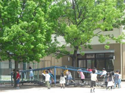 1年生もいます。昨日,修学旅行から帰ってきて今日は3時間目から登校の6年生もいます。学年やクラスを超えて遊んでいる子どもたちもいます。