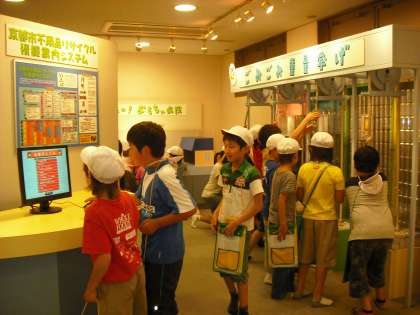 4年生の社会見学。午後からはリサイクルセンターに行きました。ここでは,家庭から出るカン・びん・ペットボトルがさらに分別され,圧縮されます。ちょうどパッカー車が入ってきたところも見られました。リサイクルに関するクイズをしたり,自分たちで体験できるコーナーをまわったりもしました。