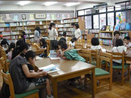 土曜読書の日,後半は,校長先生から,本の紹介と共に図書室の利用の仕方や本の探し方などを教えていただきました。友達同士や家族で一緒に本を選んだり,声に出して読んだりする姿も見られ,楽しいひと時を過ごすことができました。
