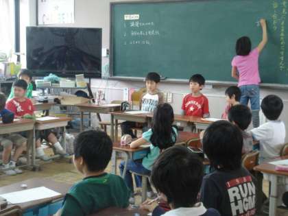 1組は国語の話し合い活動,2組は理科の予想と実験を取り入れた授業でした。子どもたちが主体的に学習に取り組む姿が見えました。