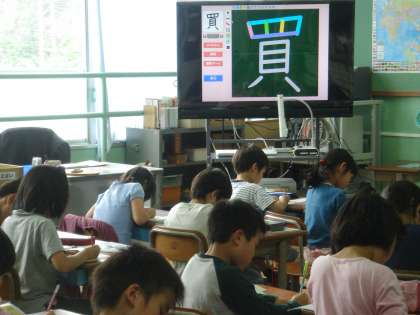 2年は3クラスとも国語で「大事な言葉を正しく聞き取る」学習をしました。写真は漢字の筆順の学習風景です。4・5組の授業は,音楽で「いろいろなリズムであそぼう」の学習でした。新しい楽器「カホン」を使って自分の受け持つリズムうちを楽しみました。