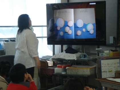 1年は,絵本「かっくん〜どうしてボクだけしかくいの〜」を大型テレビに映して,仲間づくりについて考える授業でした。毎年1月に全学年「人権について」の懇談会を持っていましたが,今年度は,学年ごとに参観懇談会の機会をとらえて「人権について」の懇談会を設定することにしました。1年保護者の方には,多くの方が残っていただき有意義な懇談ができました。