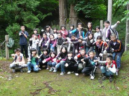 三本杉への登山の後半は,舗装されていない道をのぼりました。ぬかるんでいたり、ひるがいたりしましたが,みんな登りきりました。三本杉の前でクラス写真を撮りました。