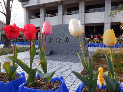 色鮮やかな花をつけ,玄関でみんなをむかえています。