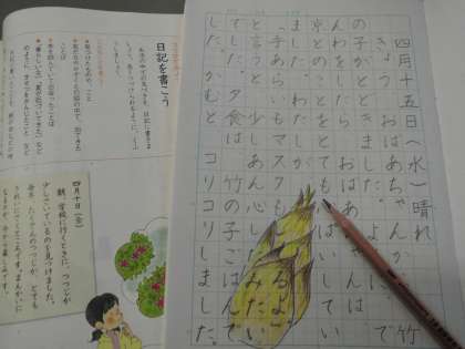 ・夕食から感じたこと     など,生活の中のふとした気づきを,日記に書きましょう。モデル文を読んでみてくださいね。