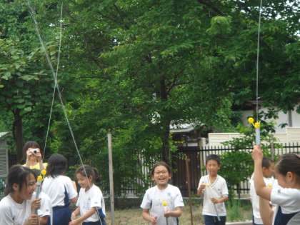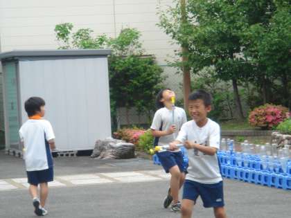 いいお天気で暑さを感じる午後の学習にピッタリでした。水が勢いよくとび出て歓声が上がりました。