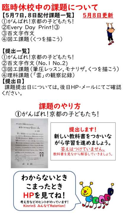5月7日,8日の「学習課題」の受け取り,ありがとうございました。