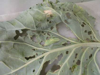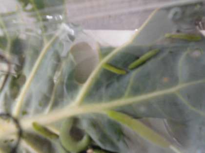 土日の休み明け,よう虫はさらにキャベツを食べ,新しいキャベツに取りかえようにも,キャベツの成長が追いつかないほど,よう虫の食欲がすごいです。