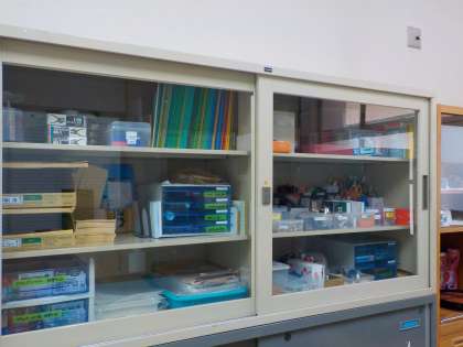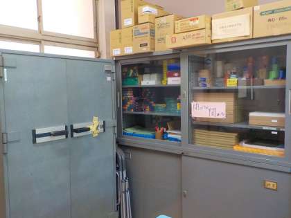 じむしつには がっこうで せんせいや こどもたちが つかう どうぐが
