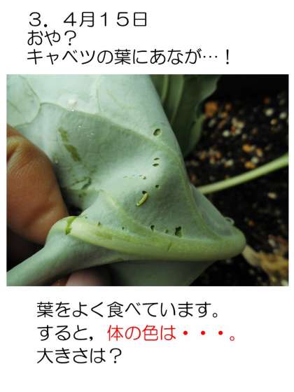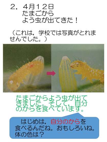 休校が続く中,モンシロチョウの育ち方について,4月からのようすをまとめました。