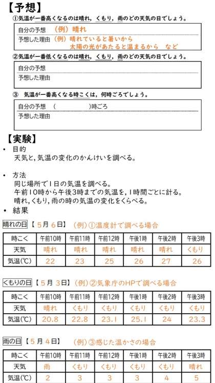 先週に出た理科の宿題,『天気と気温』についてです。