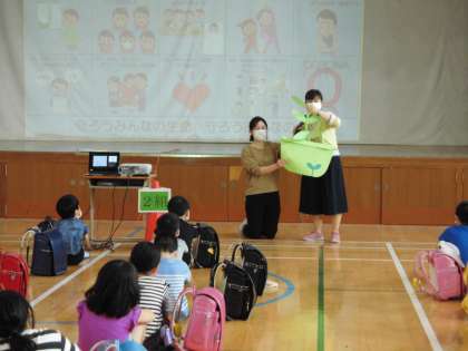 学年ごとに時間を分散して,時間ごとに体育館,教室,本の広場と場所を分散して,今日から「リ スタート(再出発)」しました。特別な動きの一日となりましたが,学年のみんなで,友だちや先生,おうちの方からの養分をたくさんもらって,「わかば」みんなで伸びていこうと誓いました。