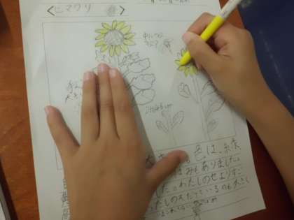 「あんなに小さいたねから,こんなに大きくなるなんて,びっくりです。」と,たねの学習も活かしていました。