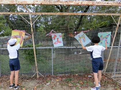 6年生が,会場の準備をしてくれました。計画委員会の子どもたちも,スローガンを掲示し,準備万端です。