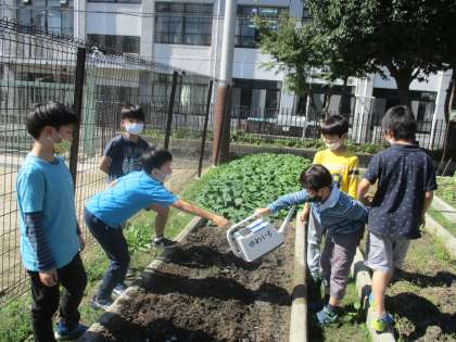 久しぶりの畑作業は晴天に恵まれました。今日は秋から冬にかけて収穫できる野菜の種を蒔きました。「はつか大根」と「天王寺かぶ」の2種類です。はつか大根はひと月ほど,天王寺かぶはふた月ほどで収穫期を迎えます。でも,種を蒔くだけでは育ちません。しっかりとしたお世話が必要です。子どもたちと朝の水やりなどについて約束をしました。はてさて,ちゃんと育てられるでしょうか?みんなで力を合わせて頑張ろー。