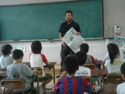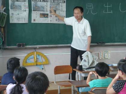 新聞は「見出し」「写真や絵」「記事」といった主な3つの部品でできていることや,3000本の記事が集まってきた中から紙面に載せる記事を選ぶことなどを知りました。実際「見出し」を作って発表し合いながら「見出し」を付けるときのポイントや,記事を書くためには,自分が実際したことや見たことだけでなく,そのことについて調べたり友達の感想を聞いたり自分の考えをしっかり伝えたりすることが大切だと教えてもらいました。新聞作りをしたいという気持ちが高まりました。