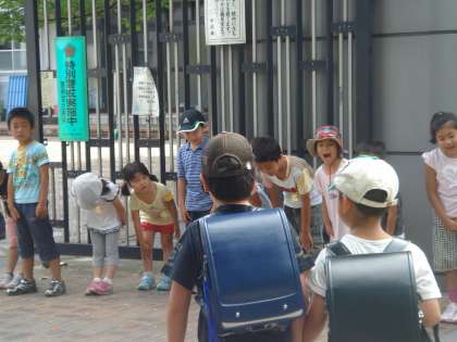 1年生にとっては初めてのあいさつ運動の日でした。「おはようございます」かわいい声が朝の道路を行きかう人に届きます。初めてのあいさつ運動をする子どもたちにとって,少し恥ずかしい子どもから「おはようございます」を言うのが心地よく思える子どもまで様々です。だんだん慣れていくことで自然にあいさつができる子どもになってほしいと思います。