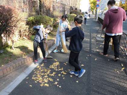 沢山の落ち葉にもめけずに一生懸命落ち葉掃きに取り組んでくれています。