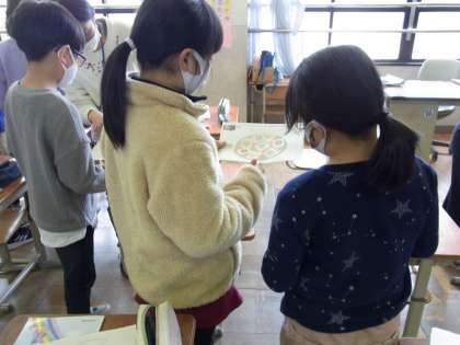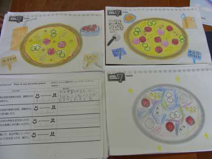 完成したオリジナルピザをお友だちに紹介しました。