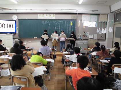 グループごとに,学校じまんできる場所や行事,人などを決め,写真や文で紹介します。