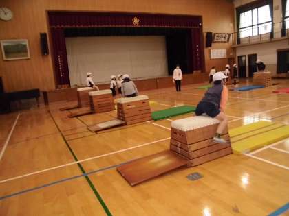 体ほぐしの運動の後,しっかり踏み切り,しっかり着手して,いざ・・・!