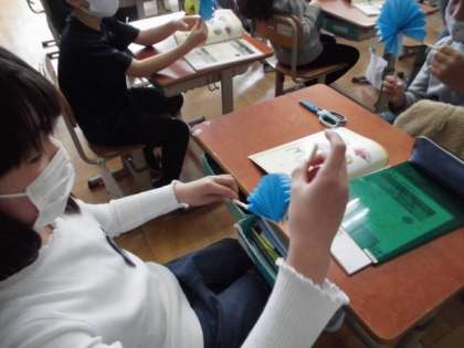 頭にのせて「とさか」,首にまいて「キリシタンの人」・・・なんて喜んでいる,まだまだかわいい4年生です。
