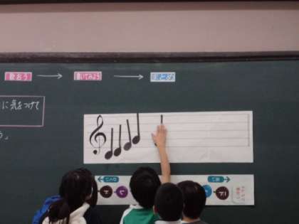 音の高さを意識して,音の風船をなぞりながら歌いました。