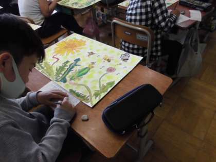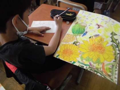自分が描いた春の物語を紹介する作品カードをかきました。
