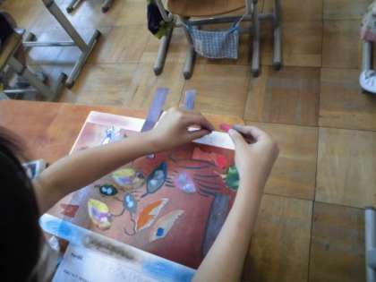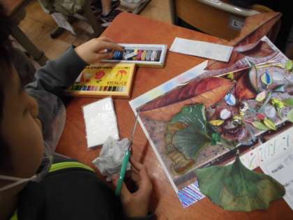 集めた葉や作った色から,自分のイメージを広げ,表したいことを見つけました。