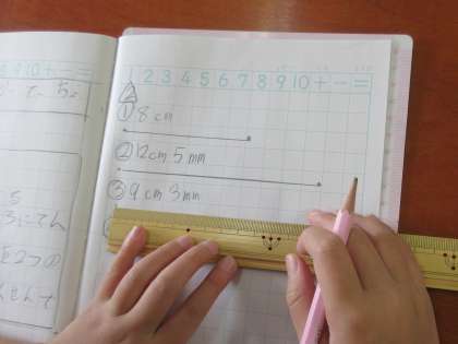 竹尺を使って,点を打って,目盛りをよく見て,すーっと引いて…と何度も練習を繰り返します。