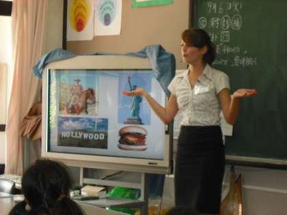 今日から新しいALTの先生が来られました。サラ・フィッタム先生です。自己紹介をしながら,ご両親の母国であるイギリスとアメリカの様子をたくさんお話してくださいました。
