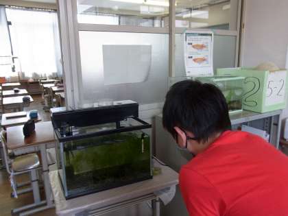 休み時間などに,水槽の中のメダカの様子を観察し,たまごを見つけ