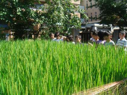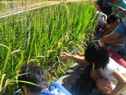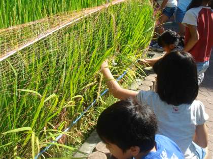 2年生は,夏休みが明けて,稲の観察をしたらこんなに大きくなっていることに驚きました。暑い夏の盛りでも,水を絶やすことなく稲のお世話をしてくださった「お米の先生」地域の島田さんのおかげです。しっかり学習につなげたいと思います。