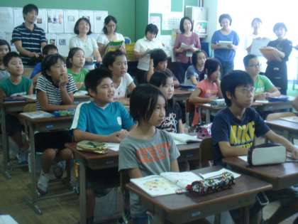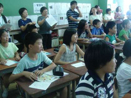5年の外国語活動の研修会をしました。学習指導要領が改訂され今年度から全面実施になり,5.6年の英語活動の時間が週一時間あります。ALTの先生だけに頼らず担任が指導する必要があります。子どもたちは,英語に親しみを感じながら簡単な英語を獲得できるようにします。5・6年の担任だけでなく誰もが研修をしておく必要があります。