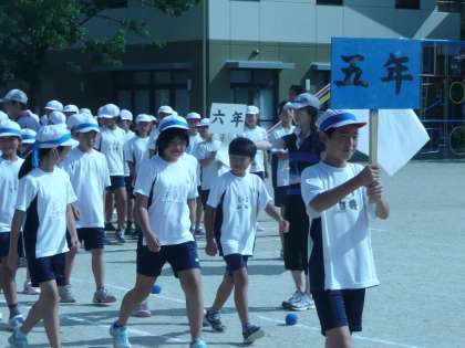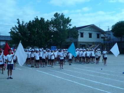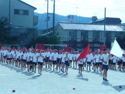 24日の運動会に向けて,今日は第1回目の全校練習を行いました。暑い中でしたが,しっかり行進し,開会式の練習に臨みました。