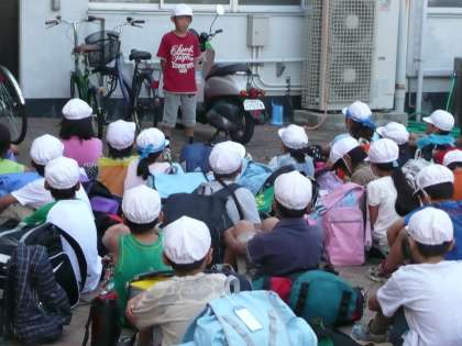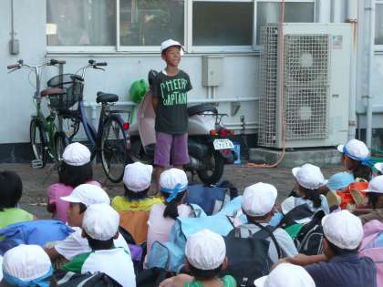 4年生は今日から2泊3日で三重県の奥志摩みさきの家に行きます。今朝は7時45分から学校の前庭で出発式を行いました。その後バス2台に分乗し,8時にみさきの家に向けて元気に出発しました。